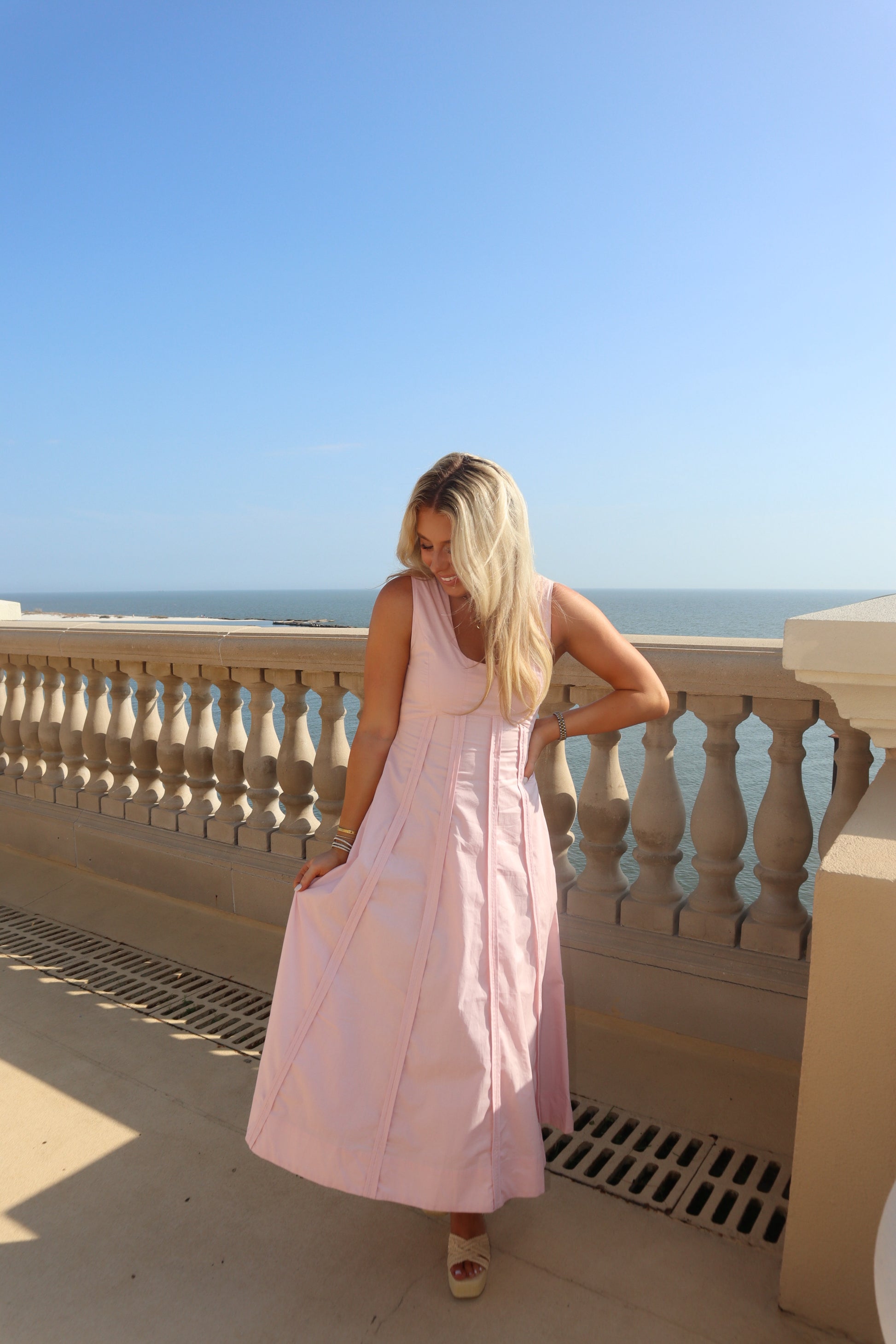 Slip into effortless elegance with this stunning peony pink dress. Featuring a flattering scoop neckline and soft, romantic hue, it's the perfect choice for spring celebrations like Easter brunch or creating picture-perfect moments by the beach at sunset. Versatile enough for any occasion, this dress brings a touch of understated sophistication to your wardrobe.